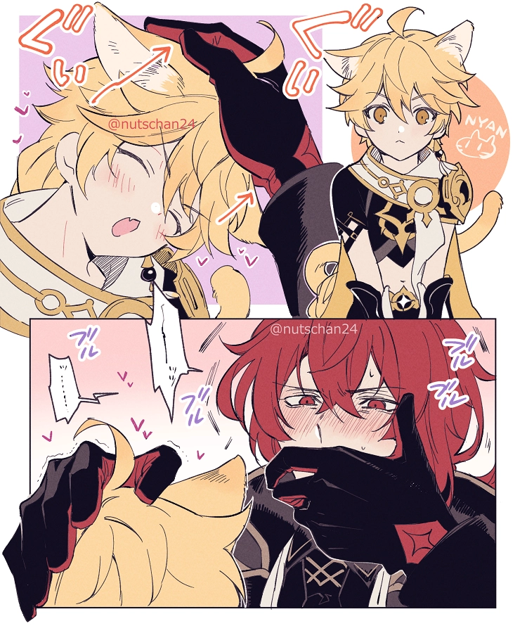 Characters: aether_(genshin_impact) diluc_(genshin_impact)
