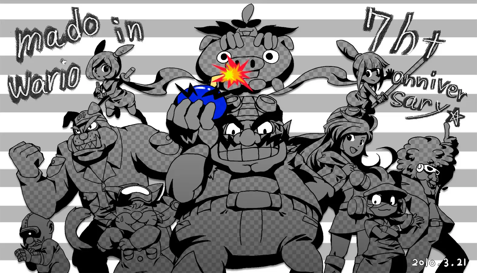 Characters: 9-volt ana_(warioware) dr.crygor dribble(warioware) jimmy_t kat_(warioware) mona_(warioware) orbulon spitz wario