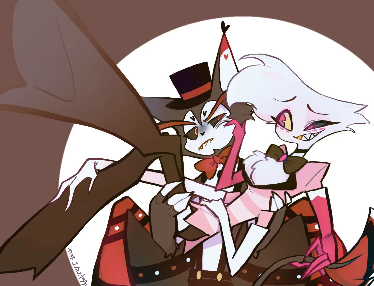Characters: angel_dust husk_(hazbin_hotel)