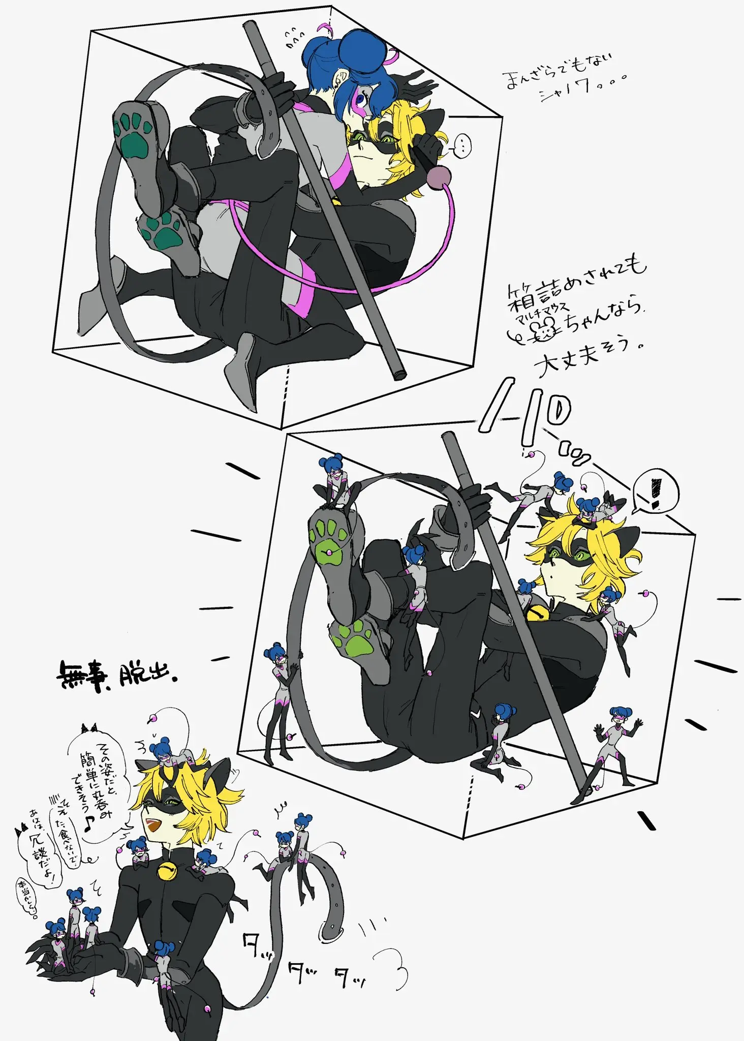 Characters: adrien_agreste chat_noir marinette_dupain-cheng multimouse_(miraculous_ladybug)